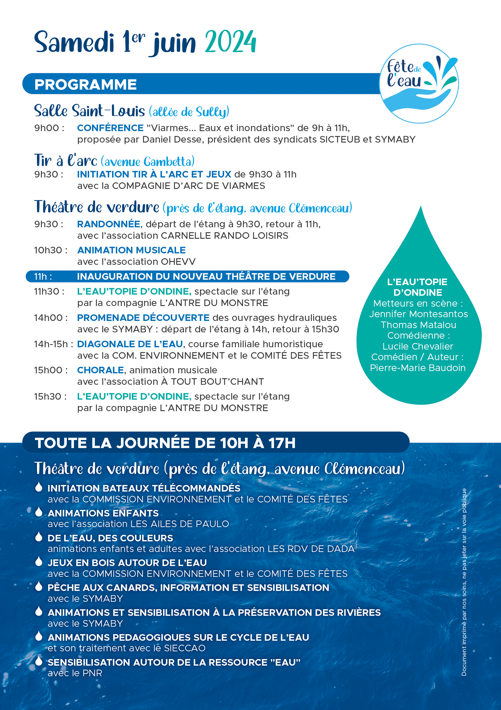 Le samedi 1er juin 2024, Viarmes fêtera son patrimoine hydraulique dès 9h avec une conférence à la salle Saint-Louis. Commenceront ensuite des animations sportives à 9h30.