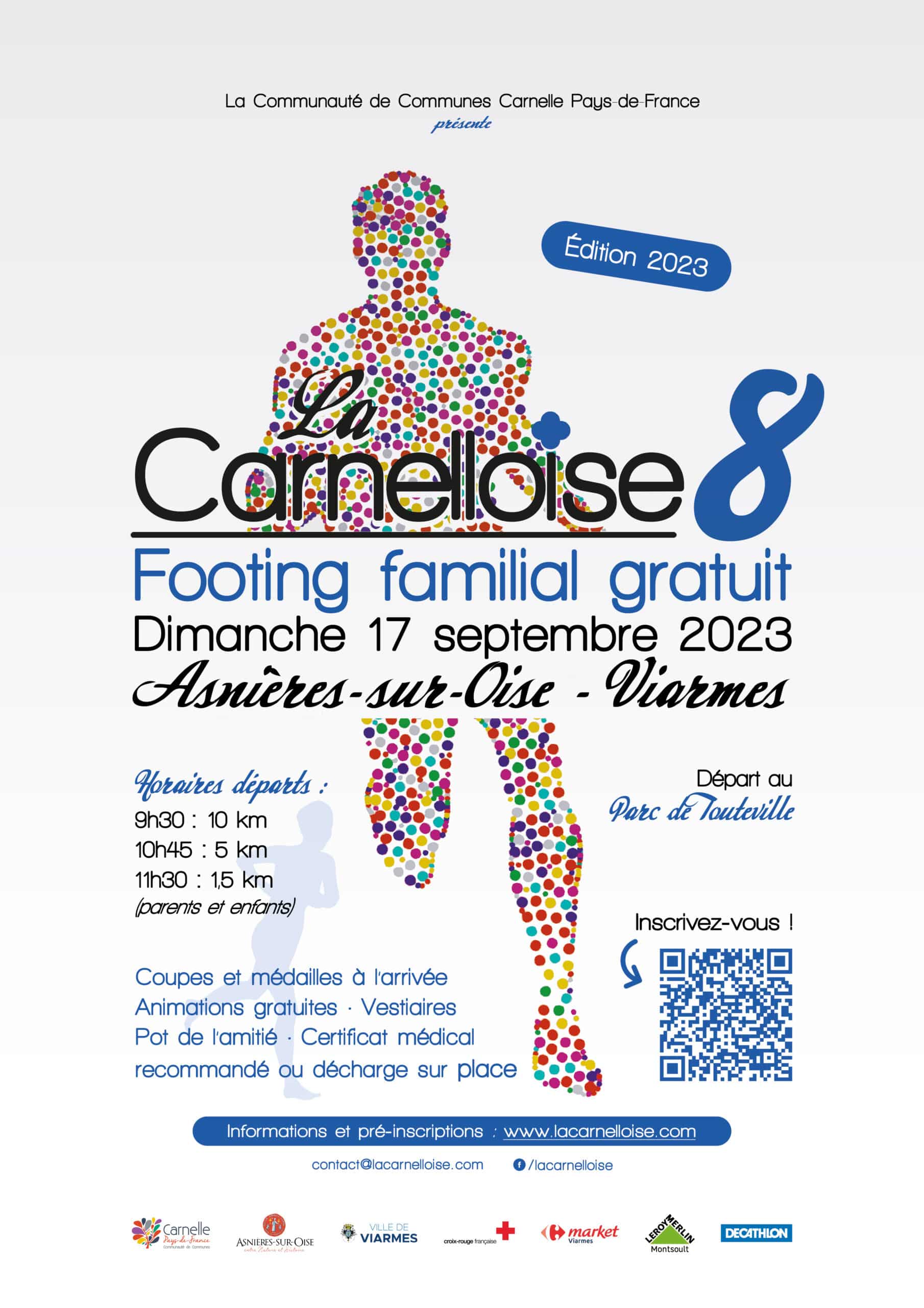 Votre footing familial gratuit débutera comme chaque année au parc de Touteville à Asnières-sur-Oise / Viarmes. Trois parcours vous seront proposés : un circuit technique de 10 km avec un ravitaillement à mi-parcours, une course de 5 km pour adultes et enfants à partir de 13 ans ainsi qu’un circuit parents-enfants de 1,5 km (vous avez la possibilité de participer à plusieurs épreuves).